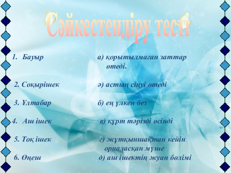 5. Тоқ ішек г) жұтқыншақтан кейін