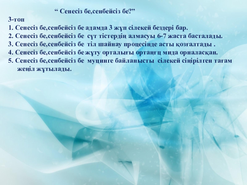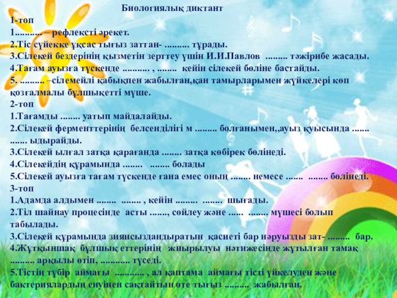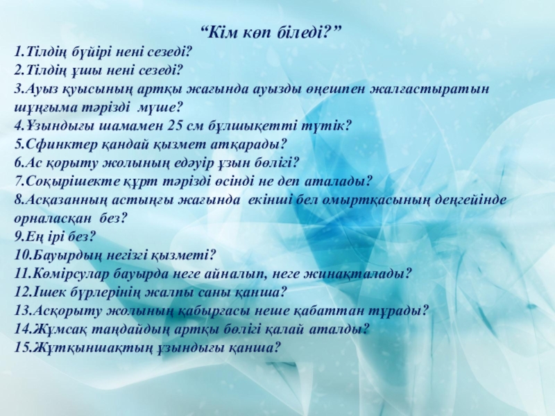 1. Сенесіз бе,сенбейсіз бе адамда 3 жұп сілекей бездері бар.