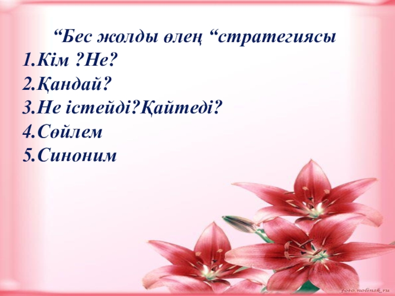 Слайд 10 “Бес жолды өлең “стратегиясы