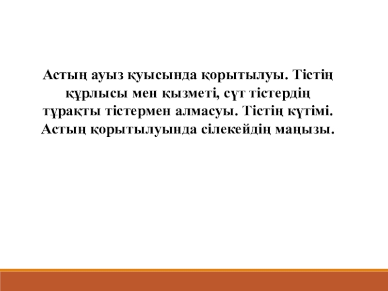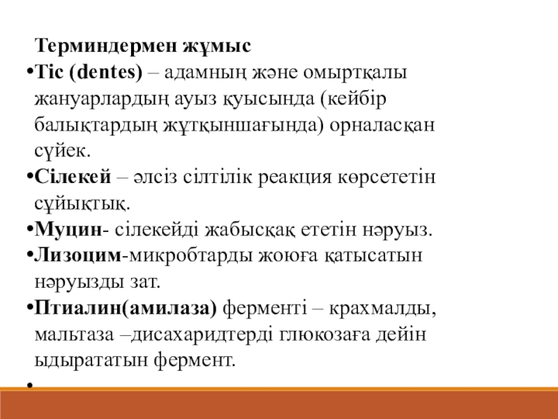 тістермен алмасуы. Тістің күтімі. Астың қорытылуында сілекейдің маңызы.