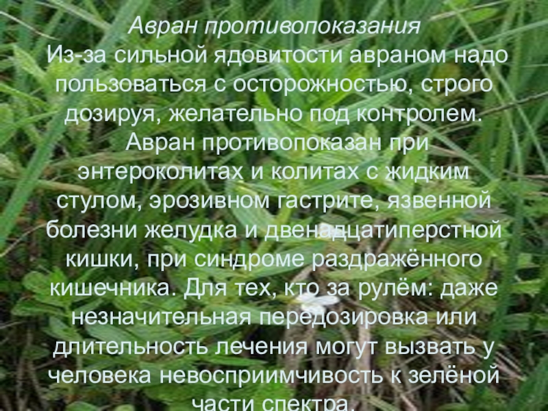 Из-за сильной ядовитости авраном надо пользоваться с осторожностью, строго