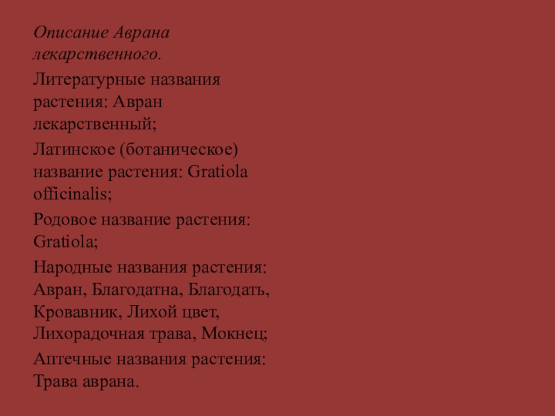 Слайд 1Презентация на тему «Авран Лекарственный»