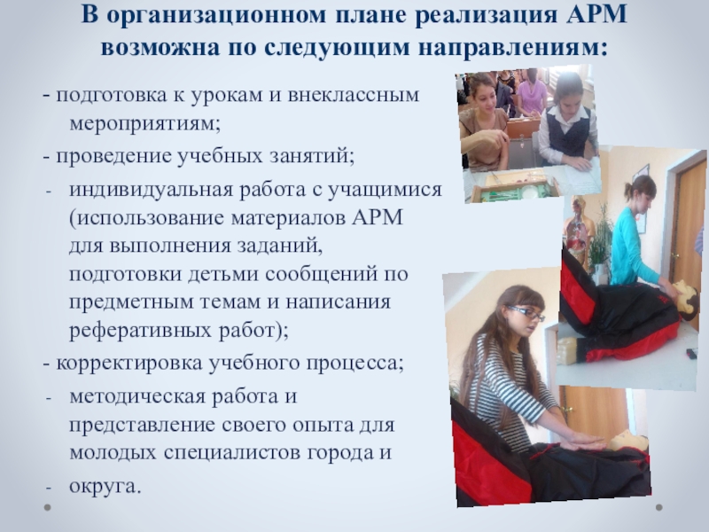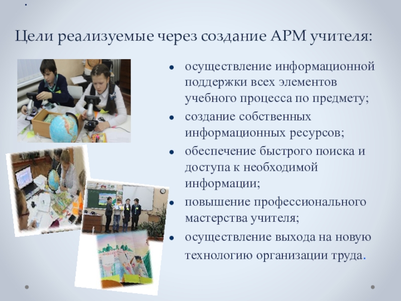 Цели реализуемые через создание АРМ учителя: