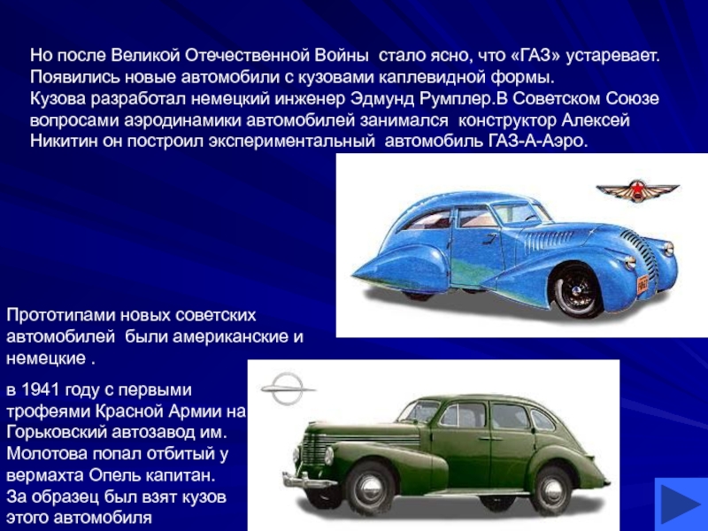 в 1941 году с первыми трофеями Красной Армии на Горьковский автозавод им. Молотова попал отбитый у вермахта Опель капитан.