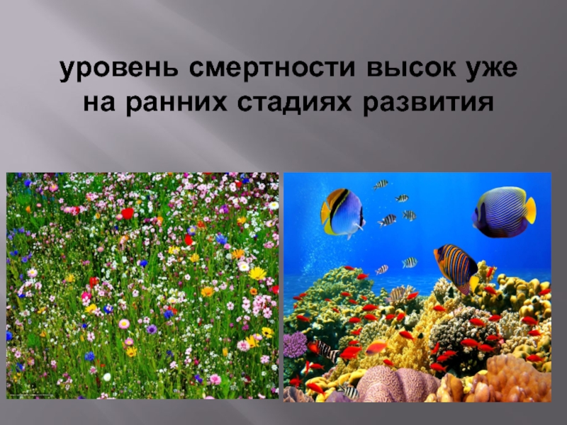 Слайд 14уровень смертности высок уже на ранних стадиях развития