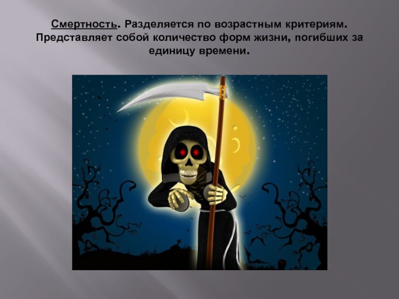 Слайд 11Смертность. Разделяется по возрастным критериям. Представляет собой количество форм жизни, погибших