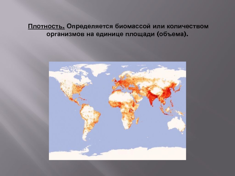Слайд 9 Плотность. Определяется биомассой или количеством организмов на единице площади (объема).