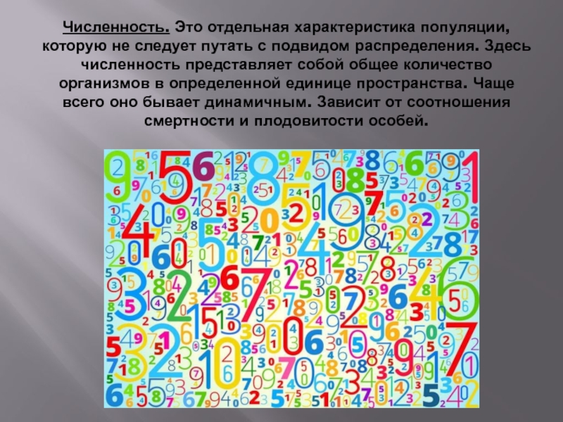 Слайд 8Численность. Это отдельная характеристика популяции, которую не следует путать с подвидом