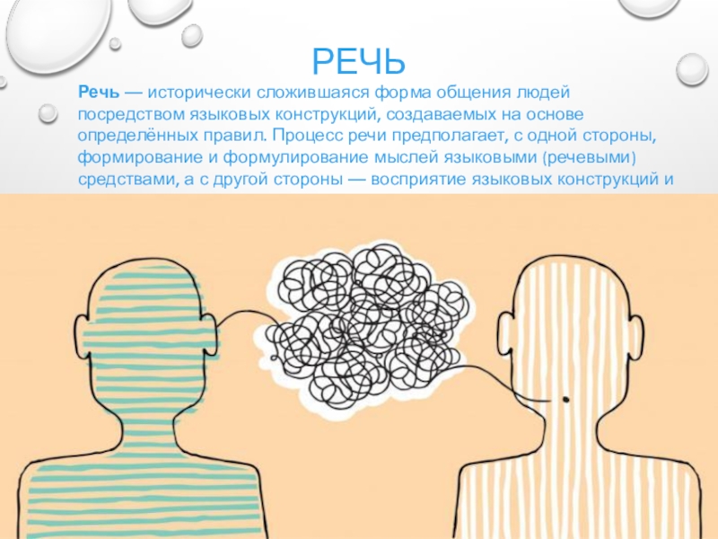 Речь — исторически сложившаяся форма общения людей посредством языковых конструкций, создаваемых на основе определённых правил. Процесс