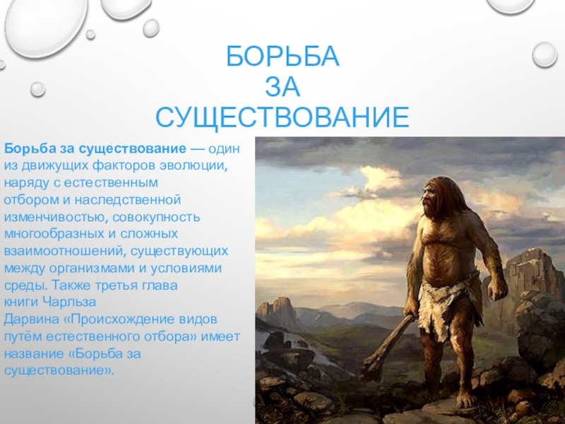 Борьба за существование — один из движущих факторов эволюции, наряду с естественным отбором и наследственной