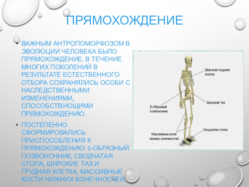 Важным антропоморфозом в эволюции человека было прямохождение. В течение многих поколений