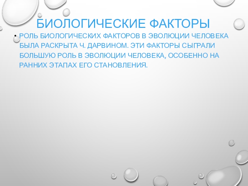 Роль биологических факторов в эволюции человека была раскрыта Ч. Дарвином.