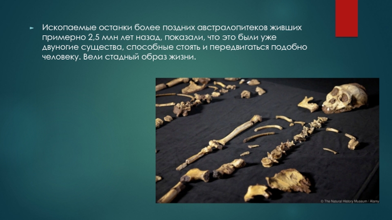 Слайд 3Ископаемые останки более поздних австралопитеков живших примерно 2,5 млн лет назад,