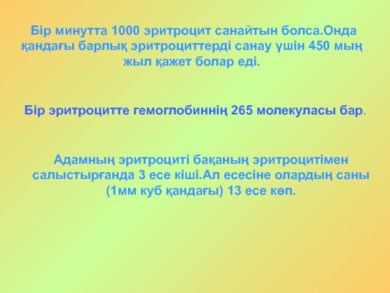 Бір эритроцитте гемоглобиннің 265 молекуласы бар.
