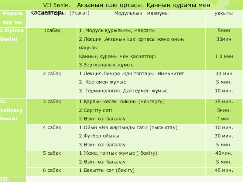 Слайд 5 VII бөлім. Ағзаның ішкі ортасы. Қанның