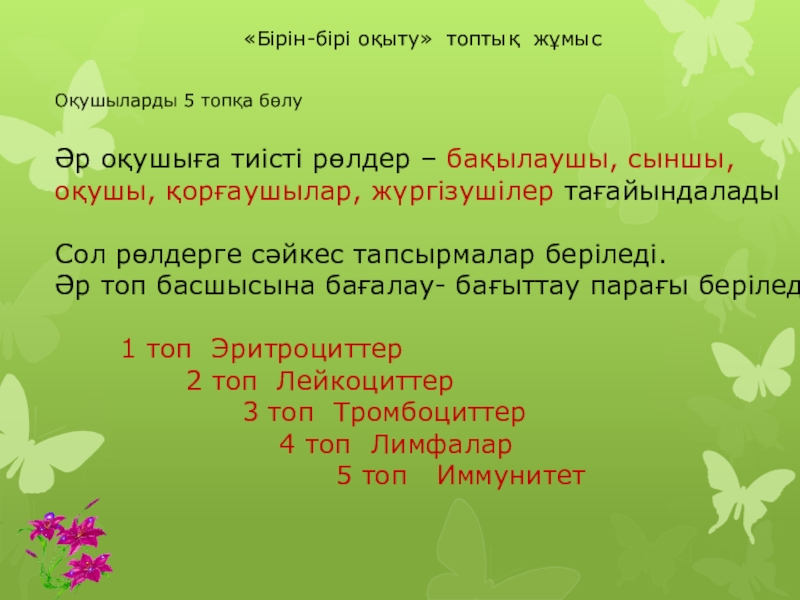 3.Қан жасушаларының атқаратын қызметтеріне , құрылысына байланысты ажырата білу;