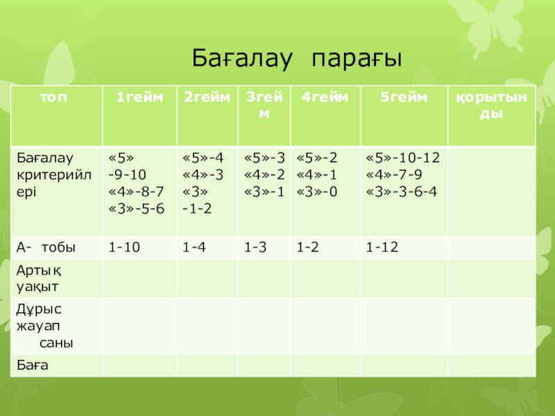 Әр топ басшысына бағалау- бағыттау парағы беріледі.