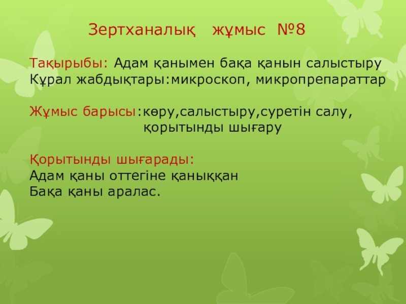 Тақырыбы: Адам қанымен бақа қанын салыстыру