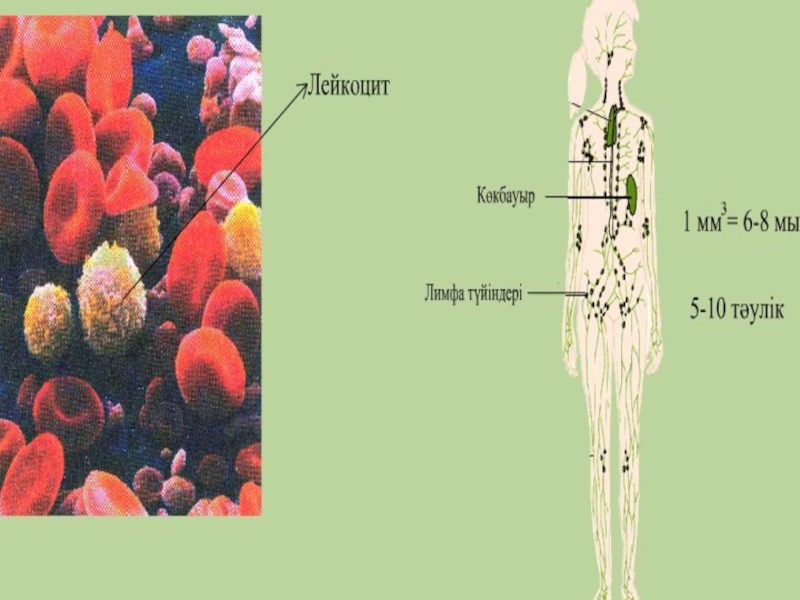 Лейкоциттер-1 мм қанда 6-8 мың.Ядросы бар, амеба тәрізді, қозғалады.