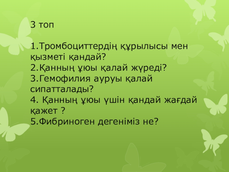 4. Тромбоциттердің құрылысын , қызметін, маңызын білу;