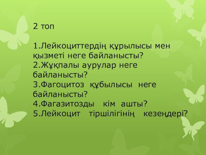 1.Лейкоциттердің құрылысы мен қызметі неге байланысты?