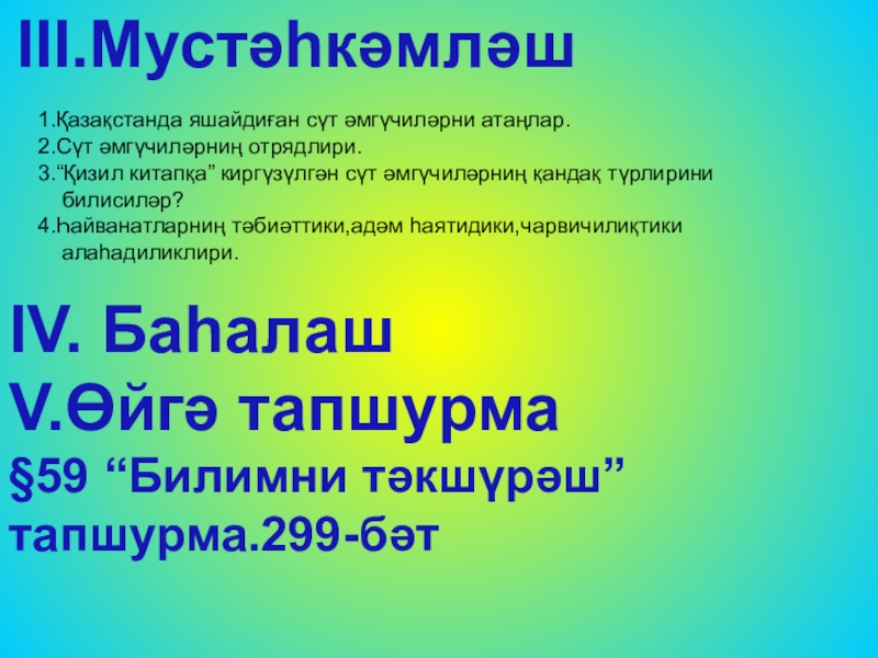 §59 “Билимни тәкшүрәш” тапшурма.299-бәт