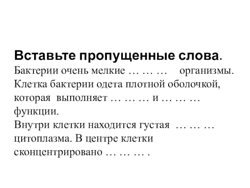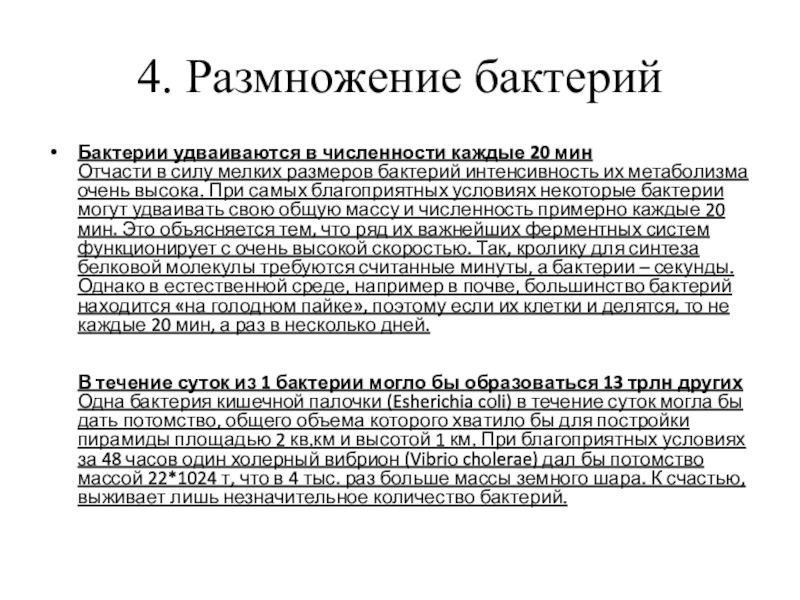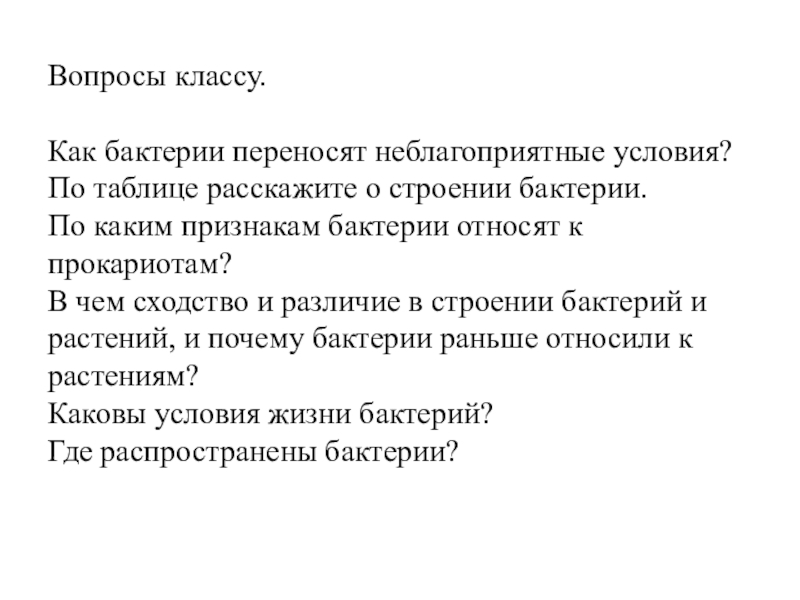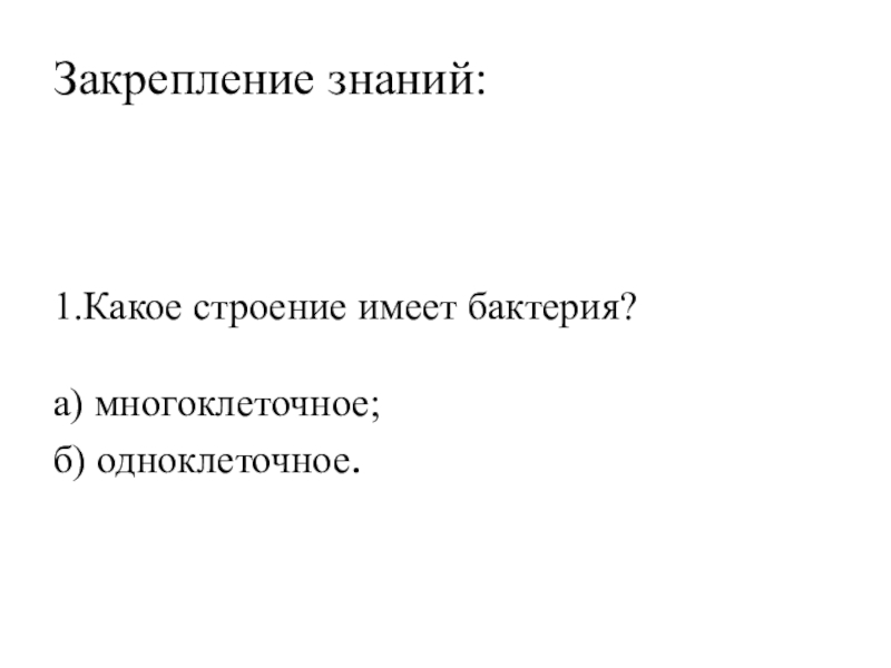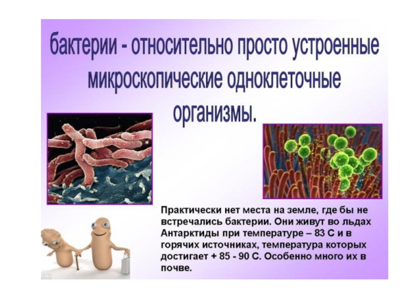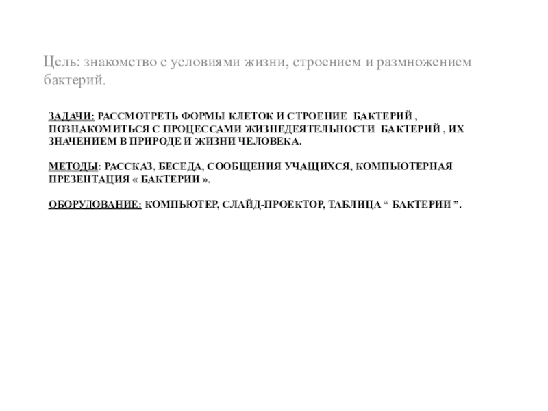 Цель: знакомство с условиями жизни, строением и размножением бактерий.