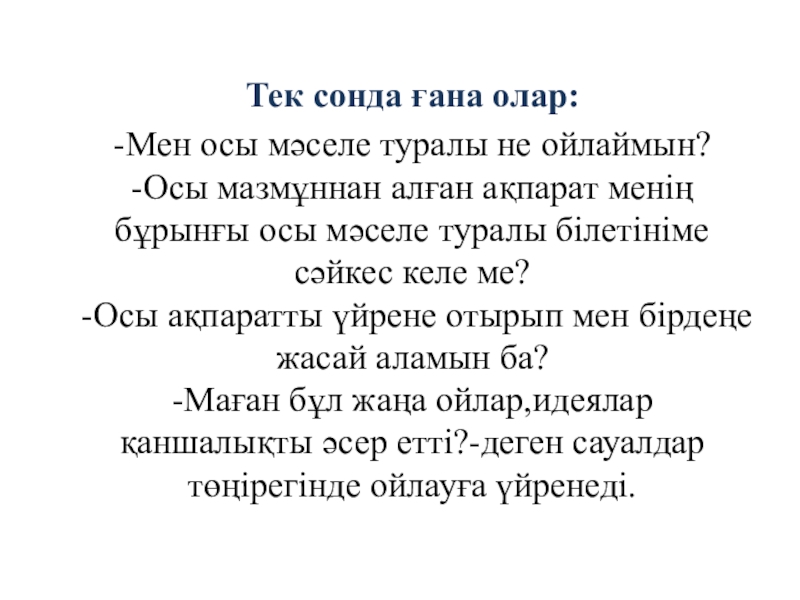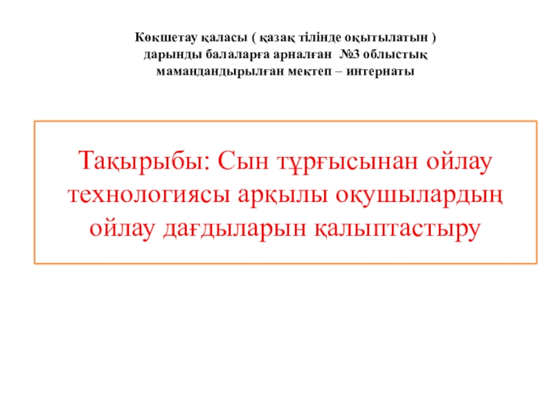Тақырыбы: Сын тұрғысынан ойлау технологиясы арқылы оқушылардың ойлау дағдыларын қалыптастыру