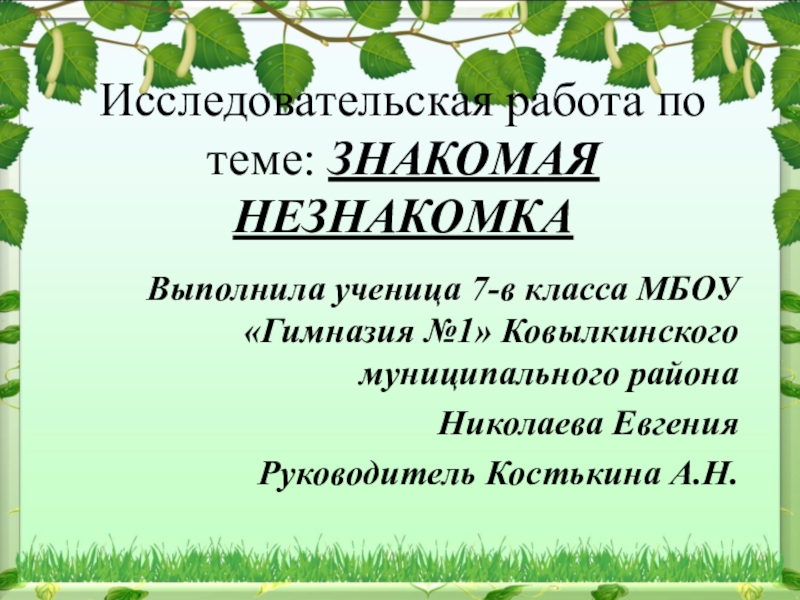 Исследовательская работа по теме: ЗНАКОМАЯ НЕЗНАКОМКА