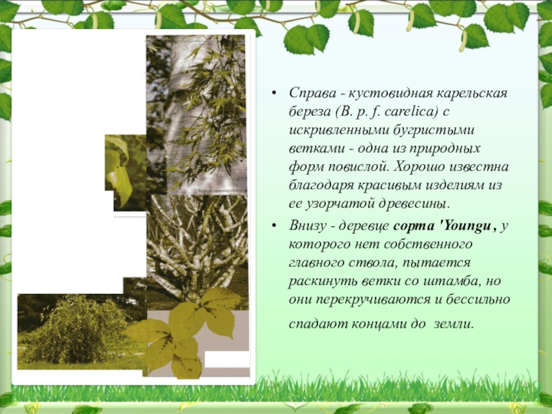 Слайд 7Бывают и более компактные березы - кустарниковые и сортовые. Из кустарниковых