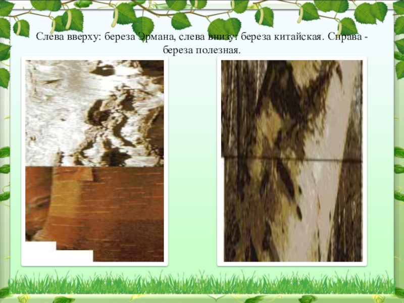 Слева вверху: береза Эрмана, слева внизу: береза китайская. Справа - береза