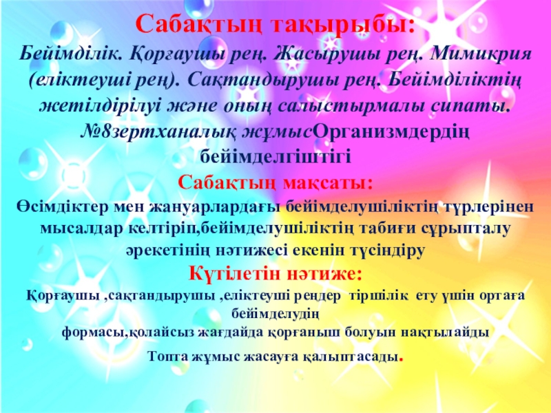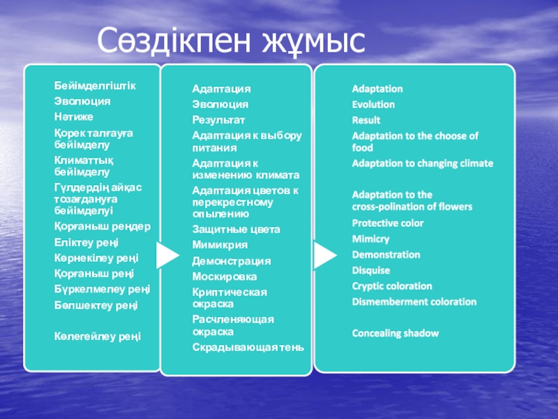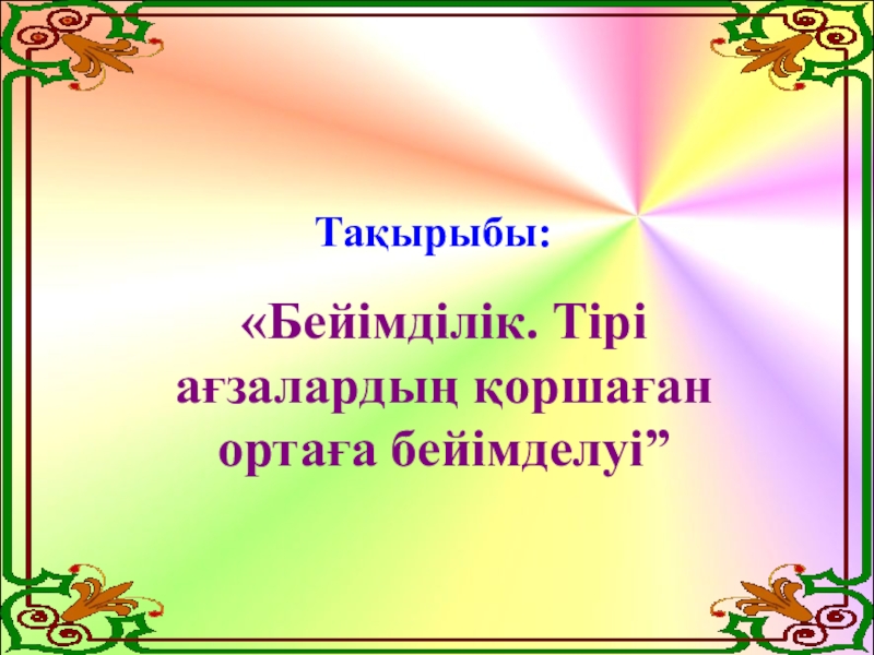 «Бейімділік. Тірі ағзалардың қоршаған ортаға бейімделуі”