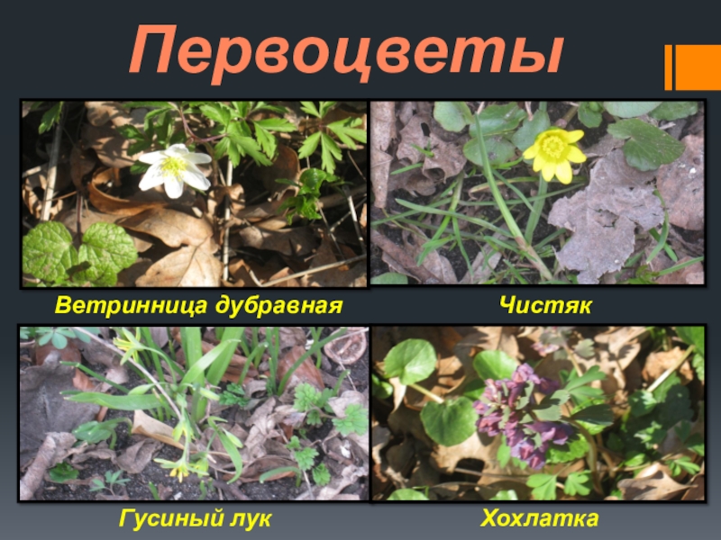 ПервоцветыВетринница дубравнаяЧистякГусиный лукХохлатка