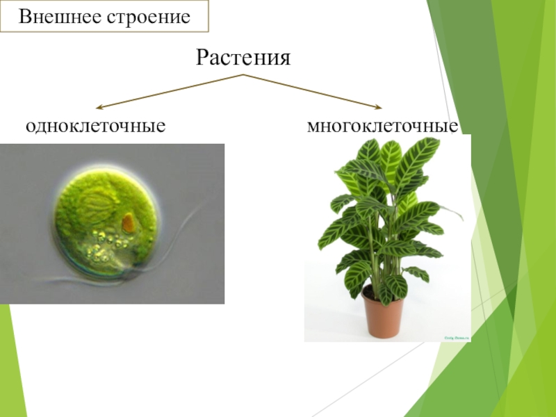 Внешнее строениеРастенияодноклеточныемногоклеточные