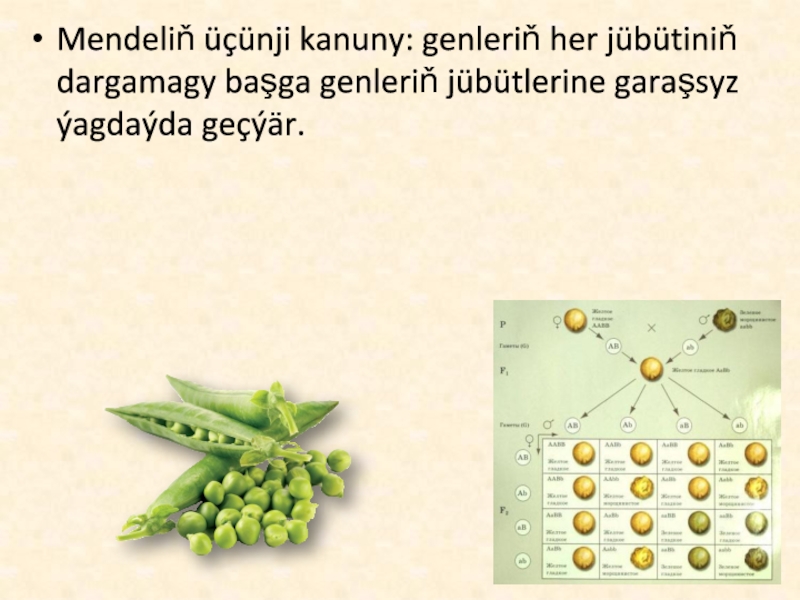 Презентация, доклад на тему Biologiýa dersinden Mendeliň 3-nji kanunyna degişli sapak