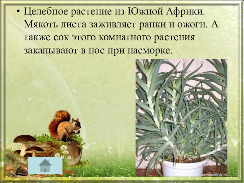 Целебное растение из Южной Африки. Мякоть листа заживляет ранки и ожоги.