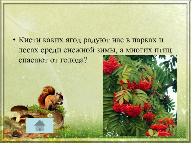 Кисти каких ягод радуют нас в парках и лесах среди снежной зимы, а многих птиц спасают от