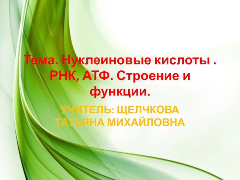 Слайд 1Тема. Нуклеиновые кислоты . РНК, АТФ. Строение и функции.