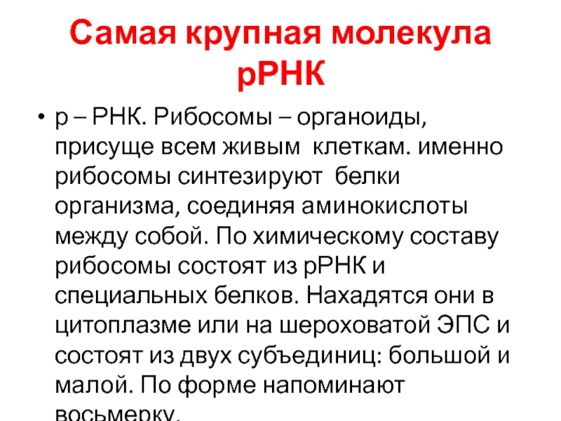 Слайд 8Самая крупная молекула рРНК