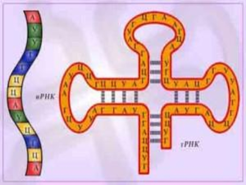 вид клеверного листка. Их задача перенести к рибосоме аминокислоты и поставить их в том порядке, в котором следует соединять белок.