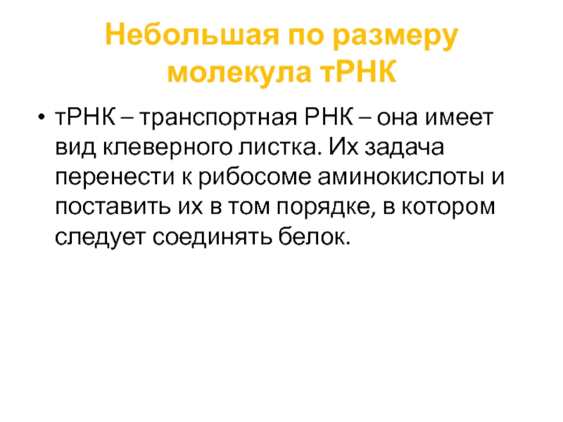 Слайд 13Небольшая по размеру молекула тРНК