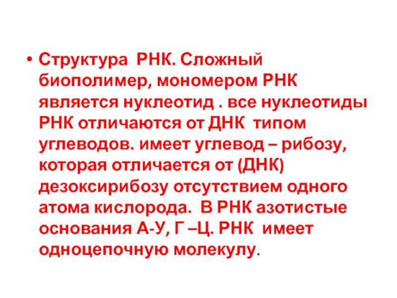 Слайд 4Структура РНК. Сложный биополимер, мономером РНК является нуклеотид . все нуклеотиды