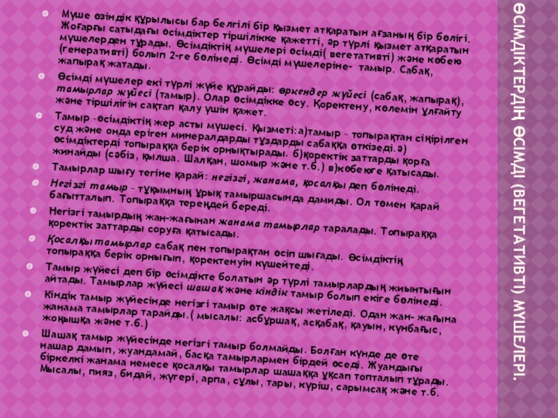 Слайд 5Өсімдіктердің өсімді (вегетативті) мүшелері.