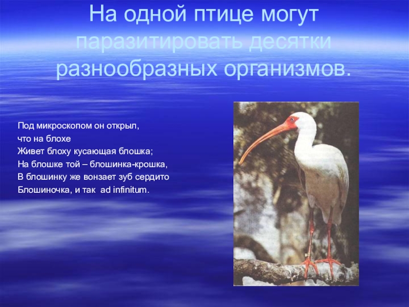 Слайд 19На одной птице могут паразитировать десятки разнообразных организмов.