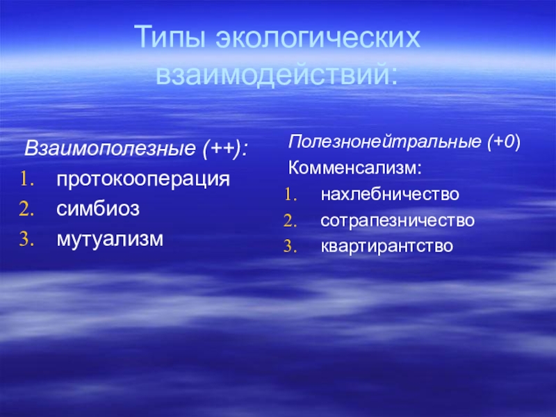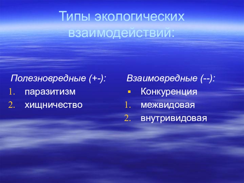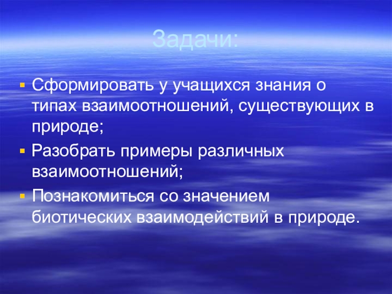 Сформировать у учащихся знания о типах взаимоотношений, существующих в природе;