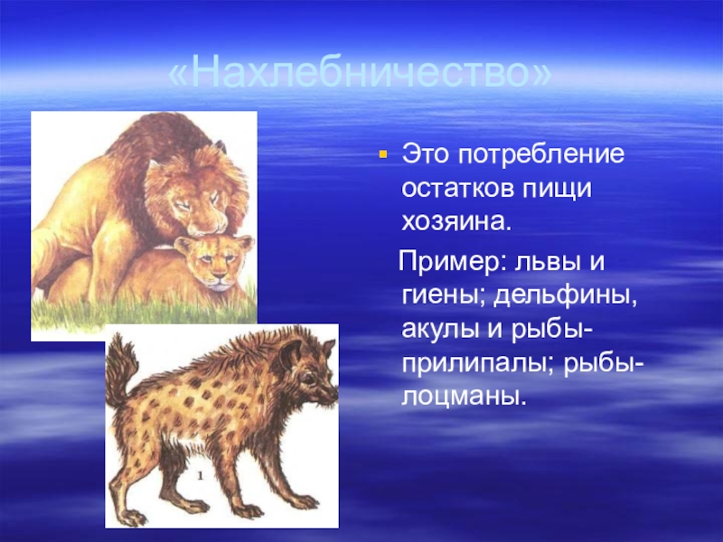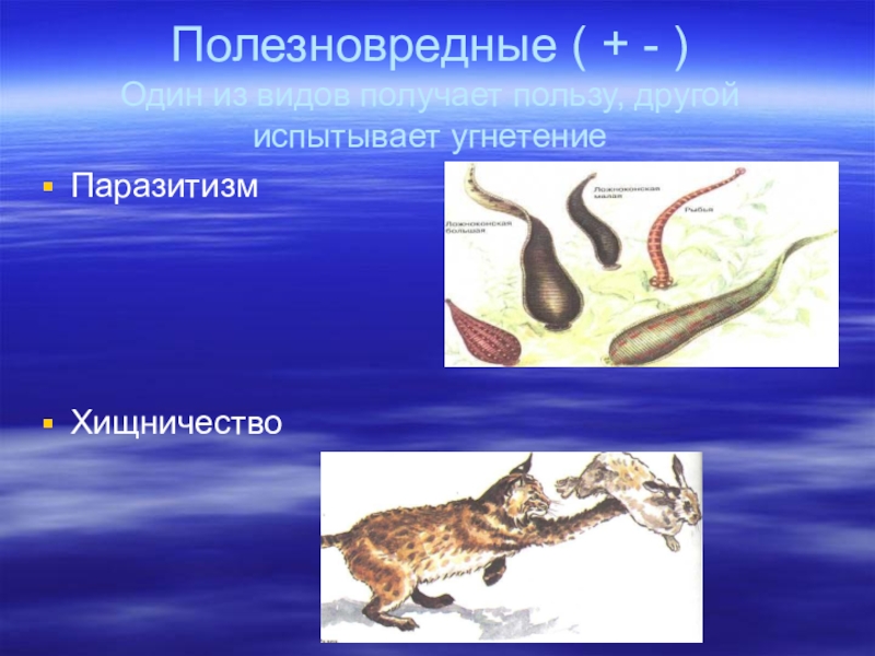 Пример: божьи коровки и тля, щуки и караси, волки и зайцы, травоядные животные и растения.