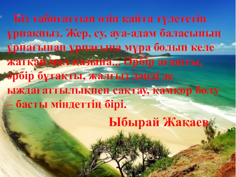 Слайд 51 Біз табиғаттың өзін қайта түлететін ұрпақпыз. Жер, су, ауа-адам баласының