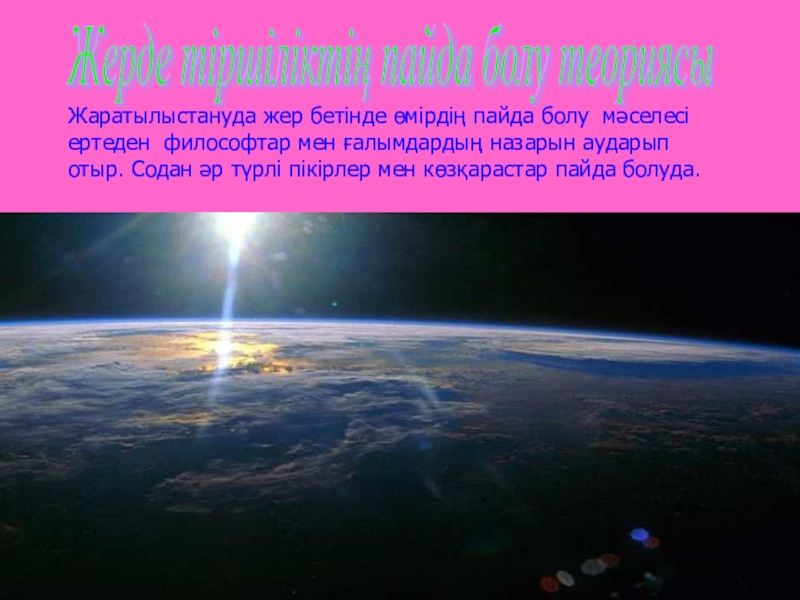 Слайд 7Жерде тіршіліктің пайда болу теориясы