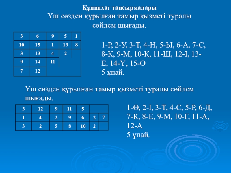 1-Ө, 2-І, 3-Т, 4-С, 5-Р, 6-Д, 7-К, 8-Е, 9-М, 10-Г, 11-А, 12-А
