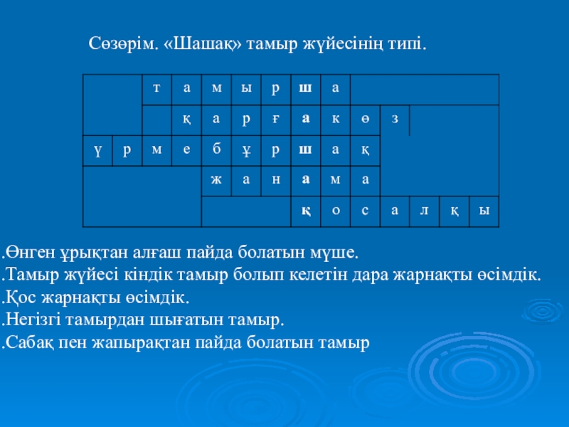 Үш сөзден құрылған тамыр қызметі туралы сөйлем шығады.